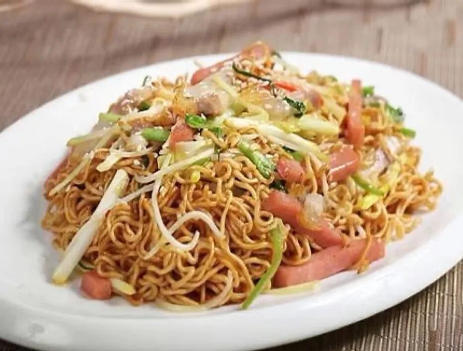 汤粉面套餐:筒骨高钙汤、鲜肉云吞米粉、肉末炒龙须菜、大白菜、番茄肉碎汤、西瓜。