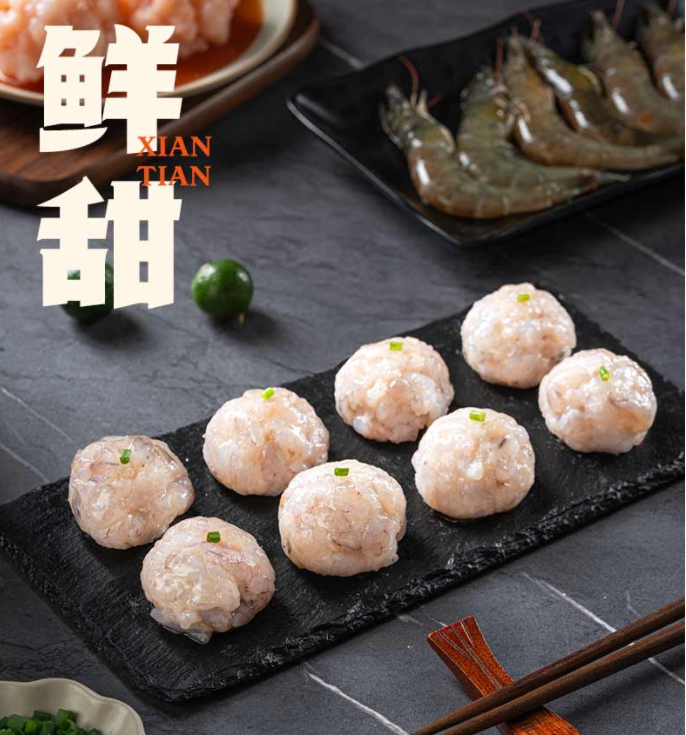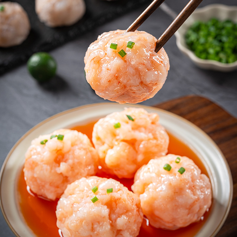 经过反复摔打搅拌工艺,保留虾的原味,肉质鲜甜,Q弹爽滑,嚼的到的虾粒~