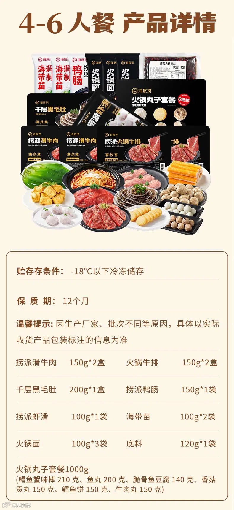 (19件套)海底捞火锅4-6人餐