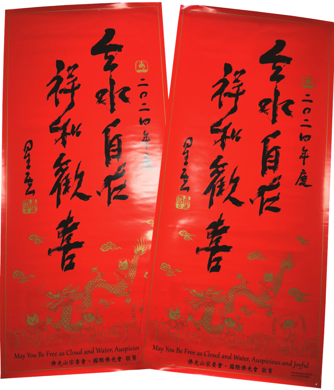 前来即可领取经佛教圣地佛光山开光的印有星云大师笔迹的春联一副;