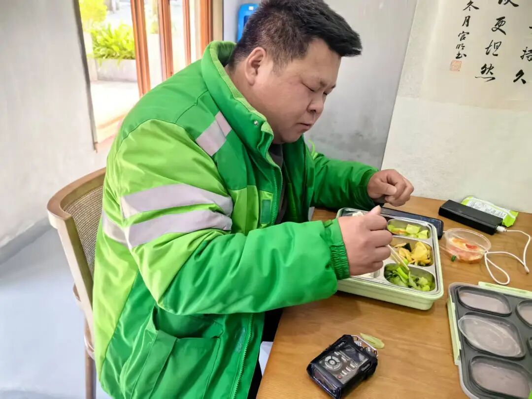 从业两年多的骑手张师傅说,自从在这个助餐点就餐,午餐终于不用吃得慌里慌张,匆匆忙忙了。
