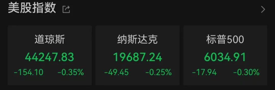 当地时间12月10日,美股三大指数震荡走弱。据Wind数据,截至收盘,道琼斯工业指数跌0.35%,标普500指数跌0.30%,纳斯达克指数跌0.25%。