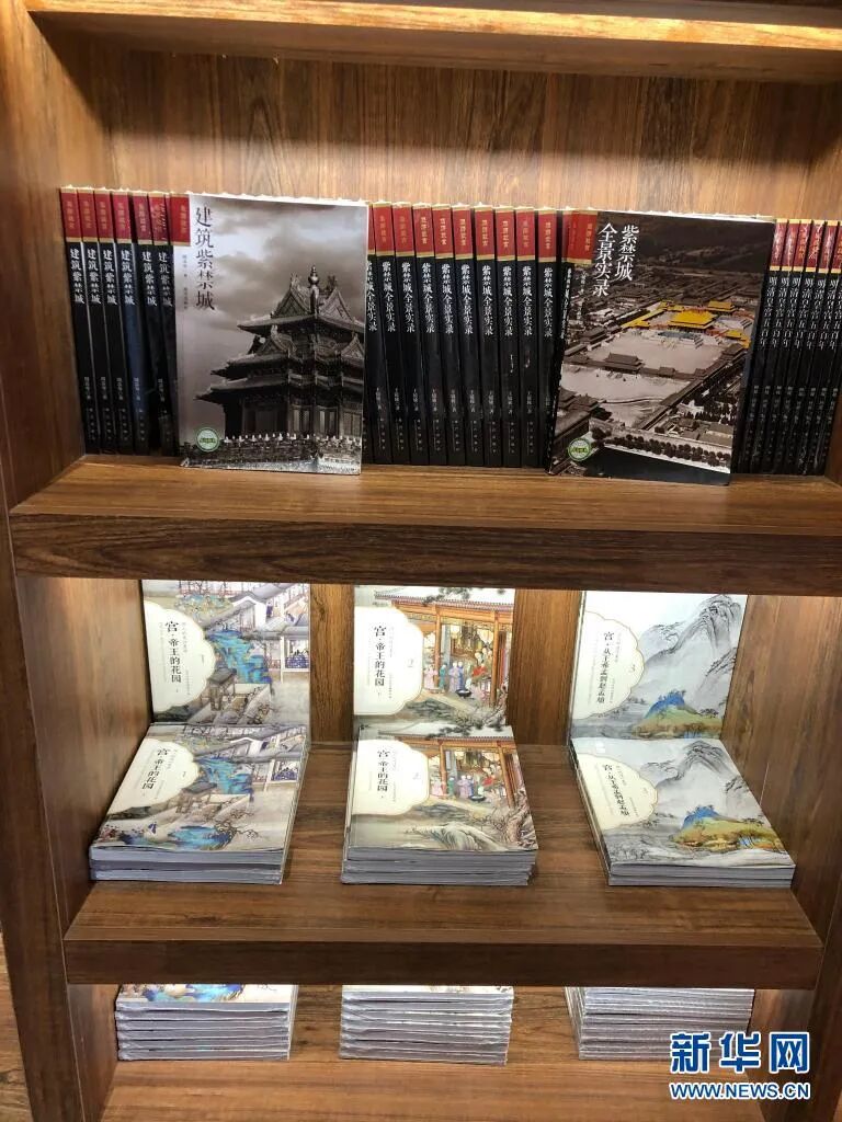 纪念馆内摆放具有故宫文化元素的书籍。新华社记者 刘恩黎 摄
