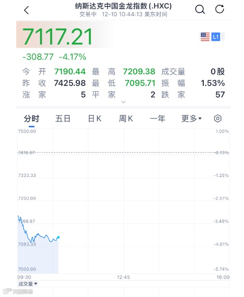 中国资产方面,中概股指数跌超4%,富时中国A50期货指数小幅下跌。