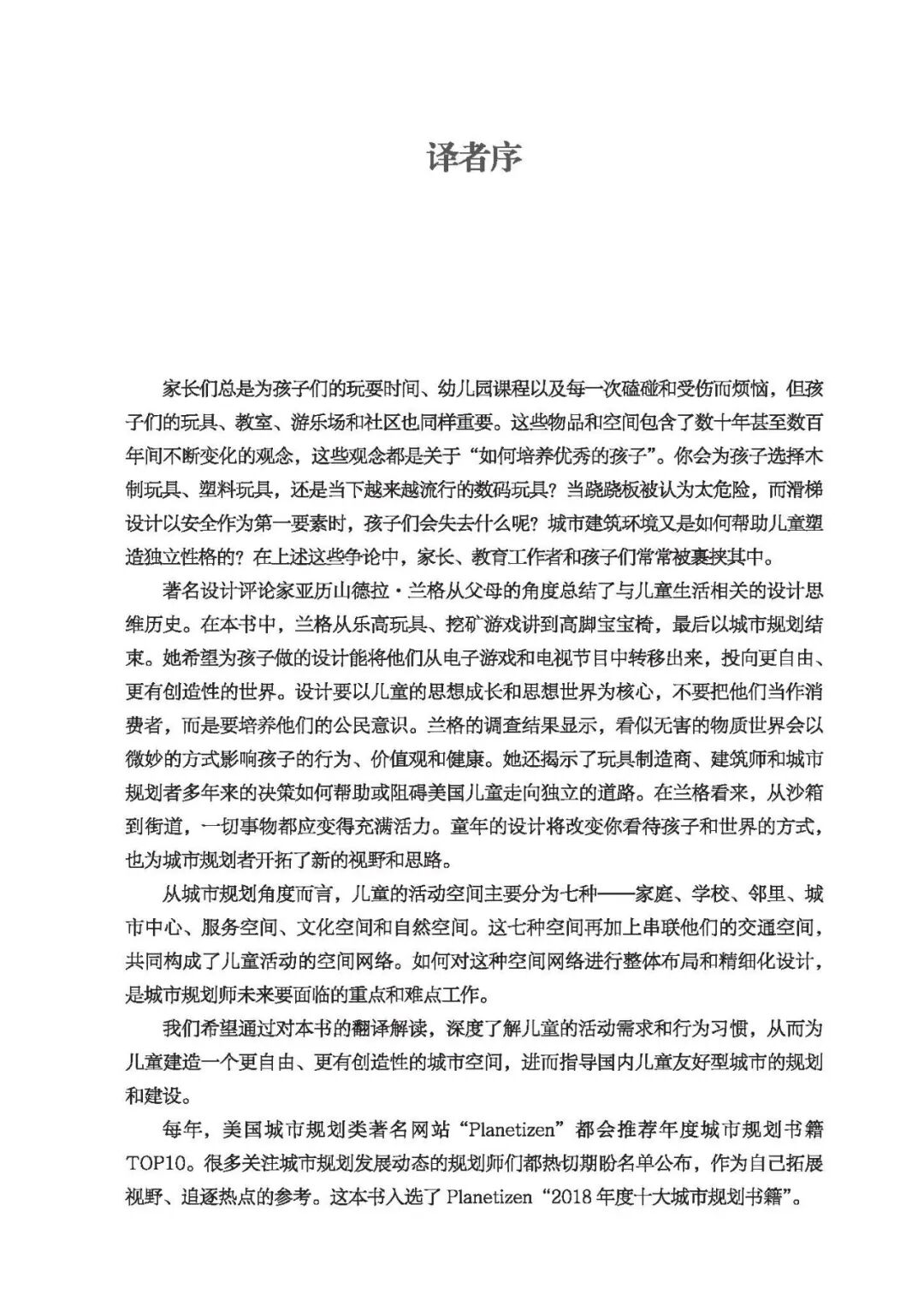 通过阅读这本书,可以让我们深度了解儿童的活动需求和行为习惯,从而为建造一个更自由、更有创造性的儿童友好城市提供有力的支撑,进而指导国内儿童友好城市的规划和建设。