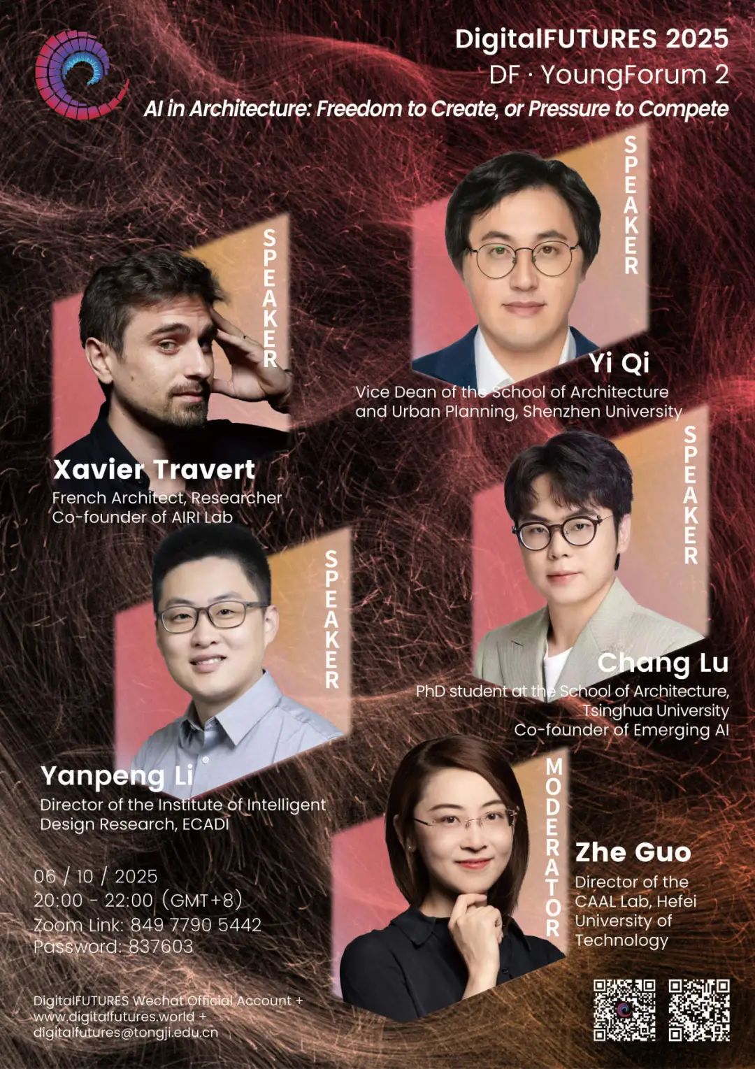 DigitalFUTURES is launched by College of Architecture and Urban Planning(CAUP), Tongji University and Shanghai Digital Architecture Fabrication Technology Center (SFAB) in 2011. International Union of Architects (UIA), Architectural Society of China (ASC), National Engineering Technology Research Center for Prefabrication Construction in Civil Engineering, and The Architectural Society of Shanghai China (ASSC) collaborate with global renowned scholars, architects, designers, enterprises and academic media in this field to establish an online and offline integrated educational platform relying on Architectural DigitalFUTURES. The events are consisting of lectures, conferences, workshops and exhibitions, etc. Nowadays, DigitalFUTURES as a global architecture exchange community, with the platform www.digitalfutures.world, encourages the inheritance and innovation, collaboration and communication of global knowledge in architecture and emphasizes scientific research about digital design theory, technology and artificial intelligence algorithms, robotic fabrication, etc. in the field of architecture and built environment.