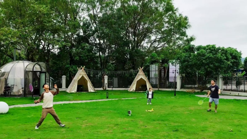草坪露营·碳火烧烤·网红泳池·私汤泡池