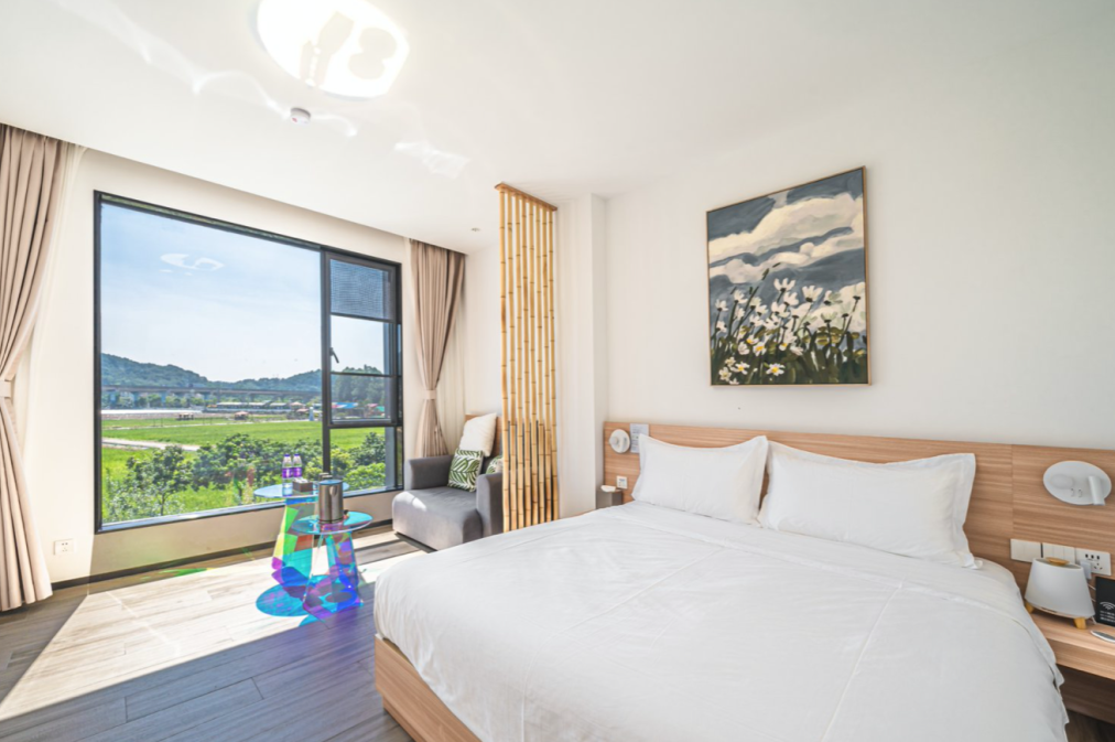 以(轻设计,重生态)为理想,为宾客打造一个鸟语花香的居住环境。民宿拥有13间客房,4种房型,根据不同花语主题设计,舒适且温馨。房内以高品质服务设施,高档床上用品,配智能卫浴干湿分离,营造一种自然温馨的度假生活。