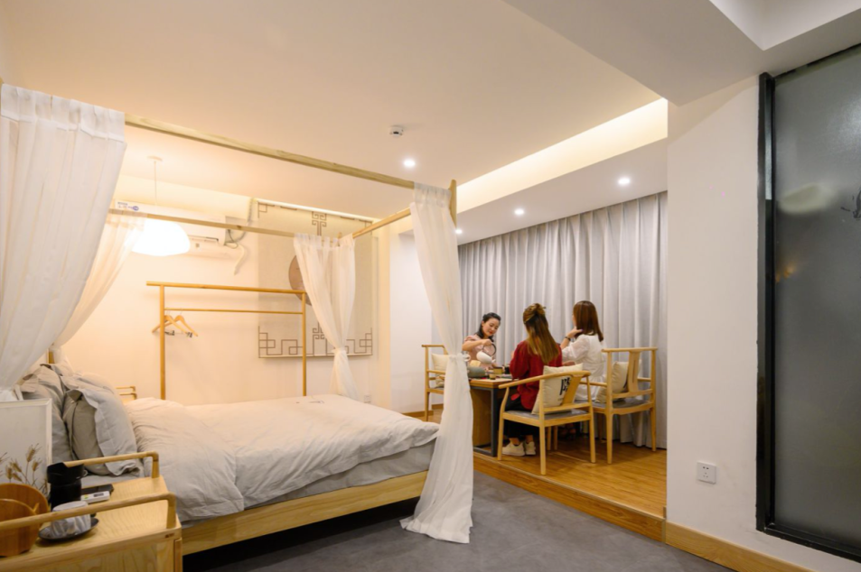 隐约客栈比邻白云国际机场,距离白云机场仅需要15分钟车程,是白云国际机场的后花园,出行非常便利。隐约客栈距离融创城及新华镇城区也是15分钟车程,住客可安排定点定时接送服务,感受舒适贴心的给出行体验!一杯香茗、一曲芃音、闲来谈笑,来隐约客栈慢道人生惬意事。