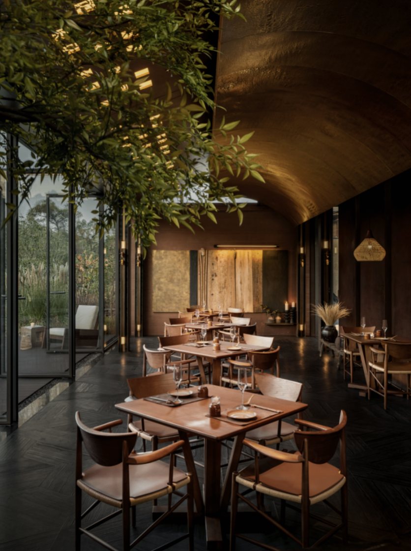 酒店建筑背靠百年瑶山,被云雾、峡谷、流溪、梯田、果园环绕包围,完美的隐于密林,与自然相融合。