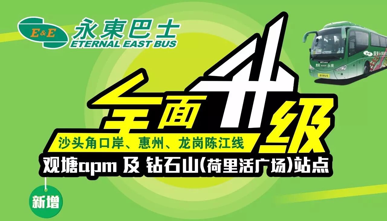 2017年6月26日沙巴快线、惠州快线、陈江龙岗市区线新增观塘apm 及 钻石山荷里活广场香港市区上落站点, 系暑假期间永东又带您们去多两处逛街及游乐地方啦!