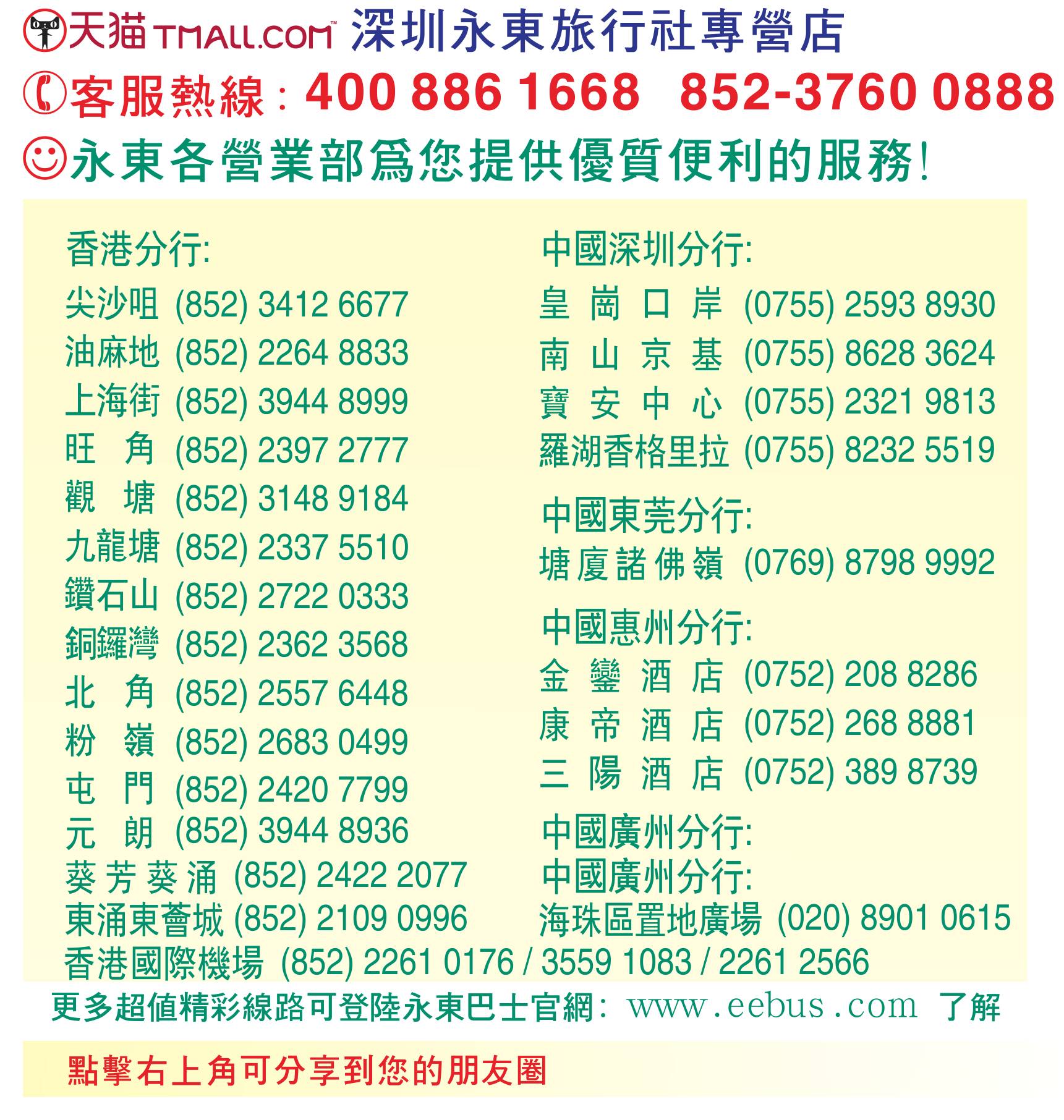 跨境巴士服務★廣東省自由行★預辦登機服務★各類包車服務★酒店房間預訂★特價機票預訂★永東易購站等