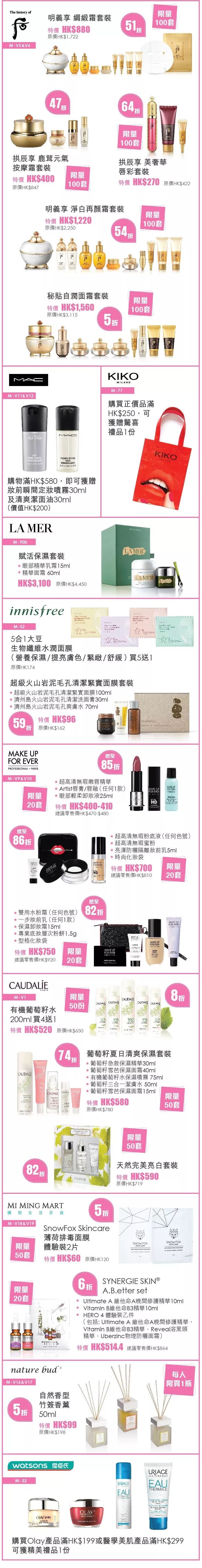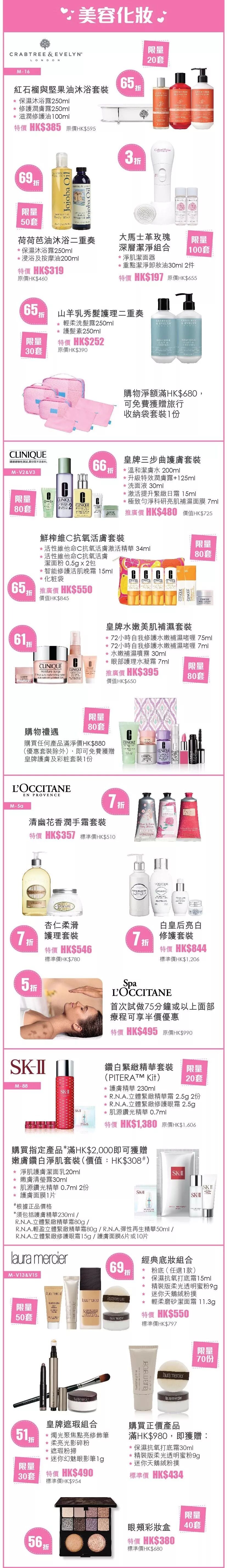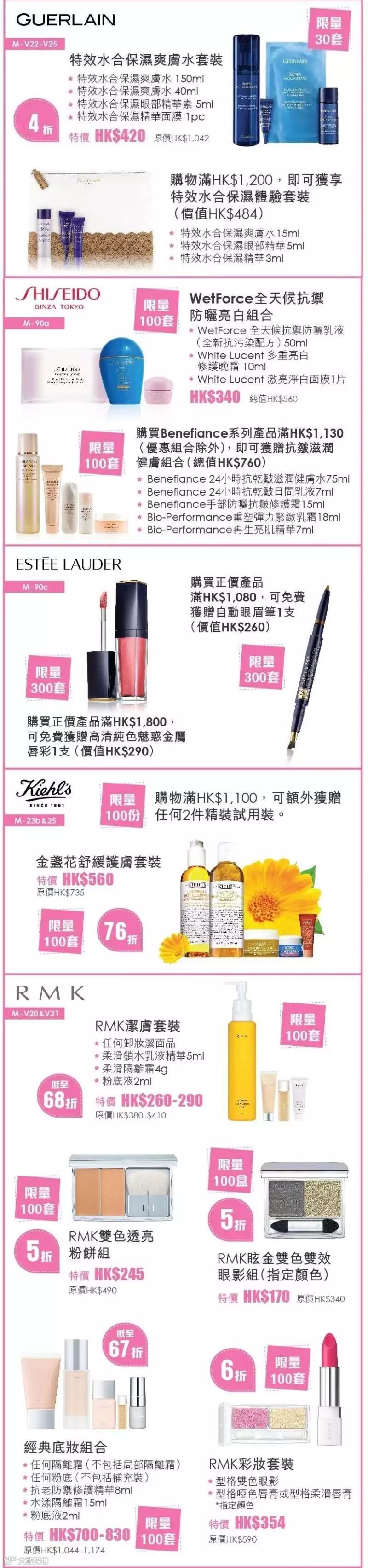 感谢周推广期间,多个美妆品牌包括LA MER、ESTÉE LAUDER、Shiseido、The History of 后、Kiehl’s、Clinique、RMK、Crabtree & Evelyn等限时推出低至1折的独家限定组合套装优惠。