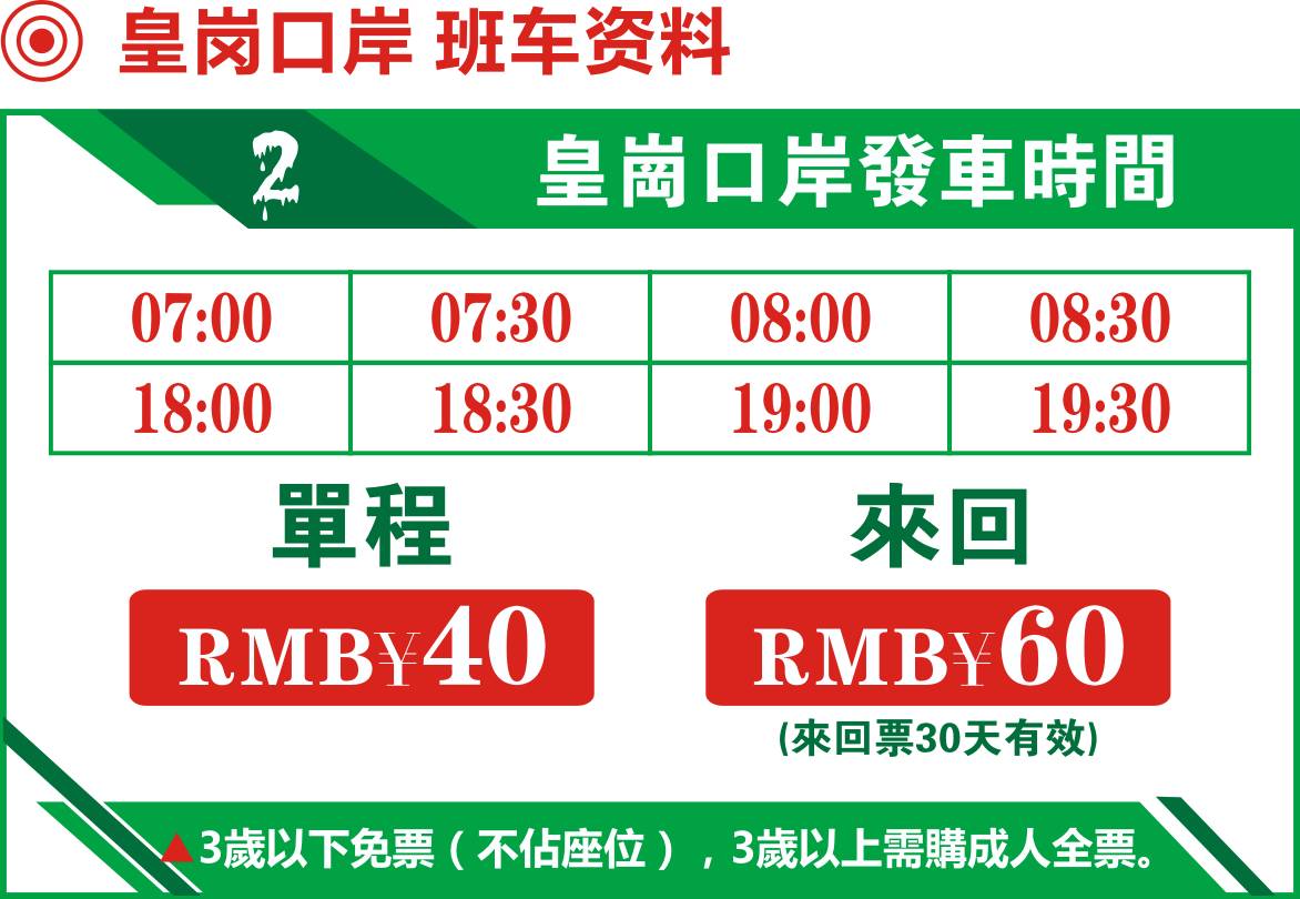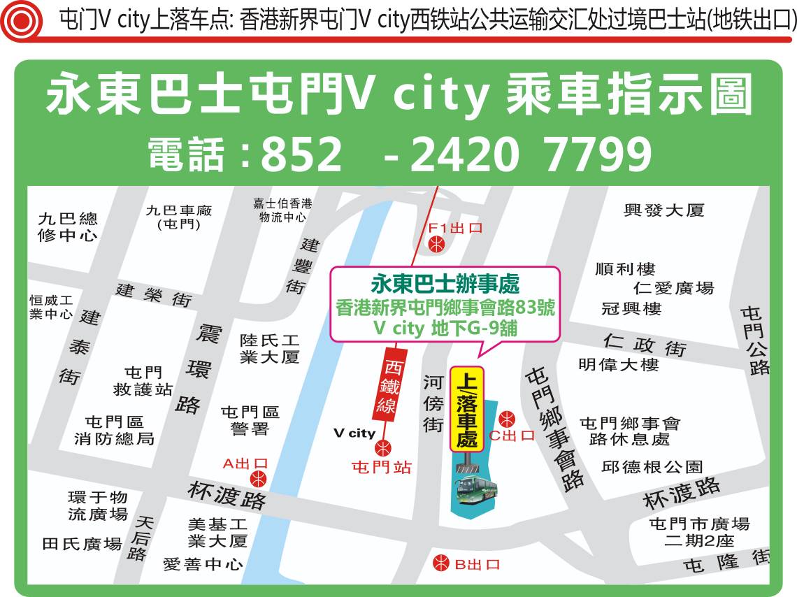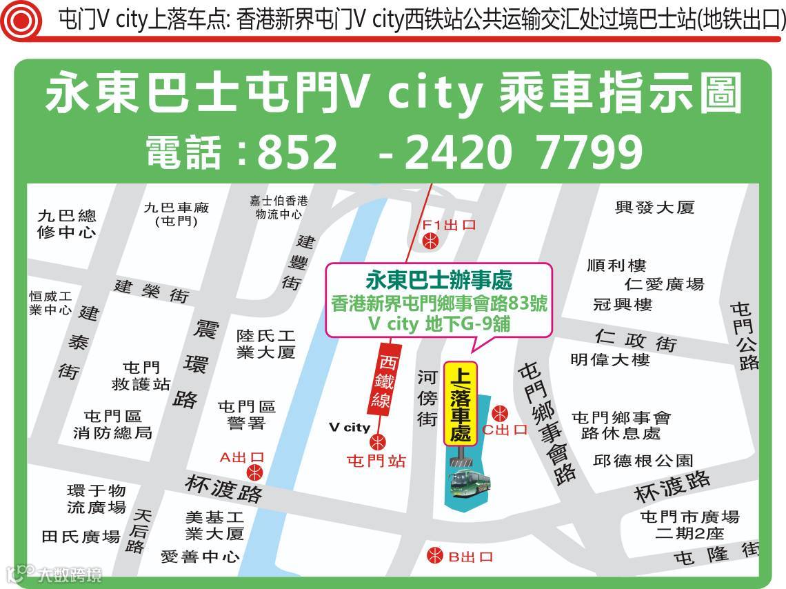 永东巴士 [屯门皇岗快线]已于2015年11月10日开通, 屯门V city – 皇岗口岸, 车程约25分钟, 平均每程车资30元. 每天服务时间07:00 – 08:30、18:00 – 19:30 每30分钟一班, 是中港上班一族, 自由行购物出行必然之选!