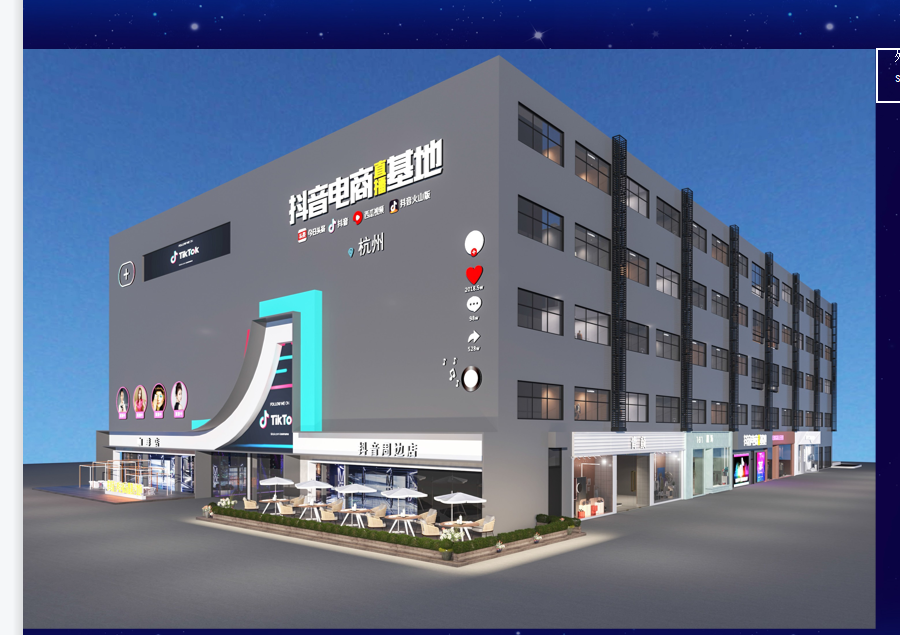 基地位于在财通园区5号楼,预计7月全面建成,首期面积约2万平方米,拥有裸眼3D沉浸式秀场与一线品牌旗舰直播间矩阵,未来规划发展成为新兴消费品牌、电商主播达人、设计师IP打造、头部供应链体系等产业为一体的抖音电商直播孵化基地,不断为直播生态企业注入人才资源。