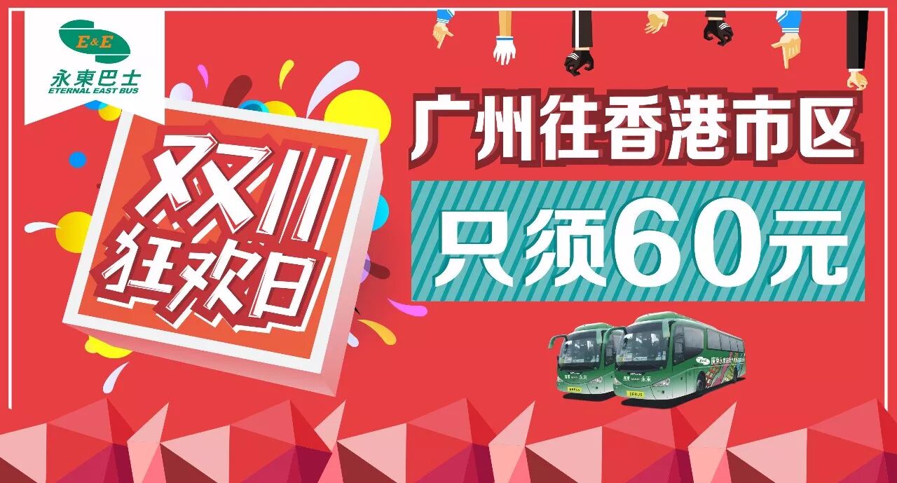 双11来袭, 永东巴士广州线往香港市区单程车票只须60元, 还有新增天河区天汇广场站点。
