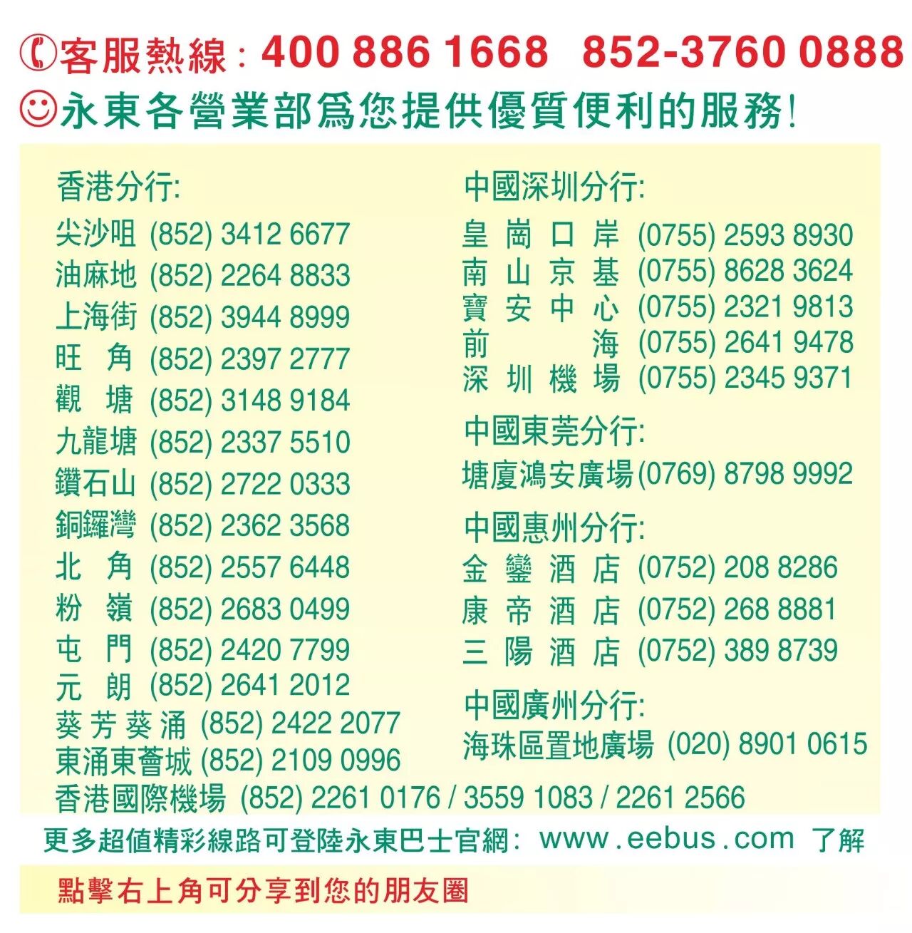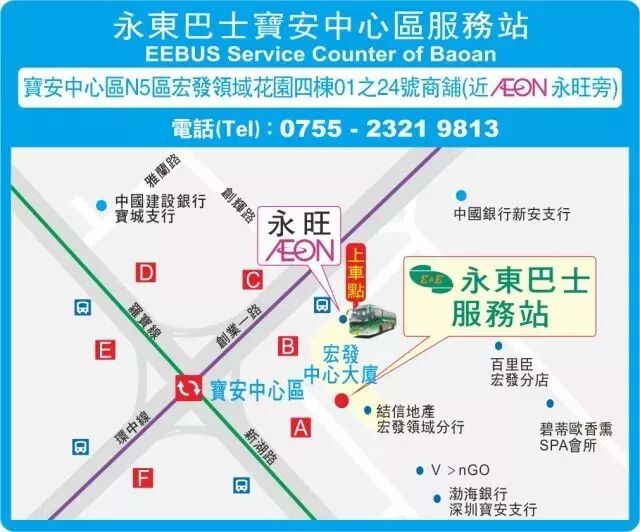 永东巴士于南山区京基百纳广场及宝安中心区宏发领域花园均设有香港直通巴士服务服, 方便你们往返香港。