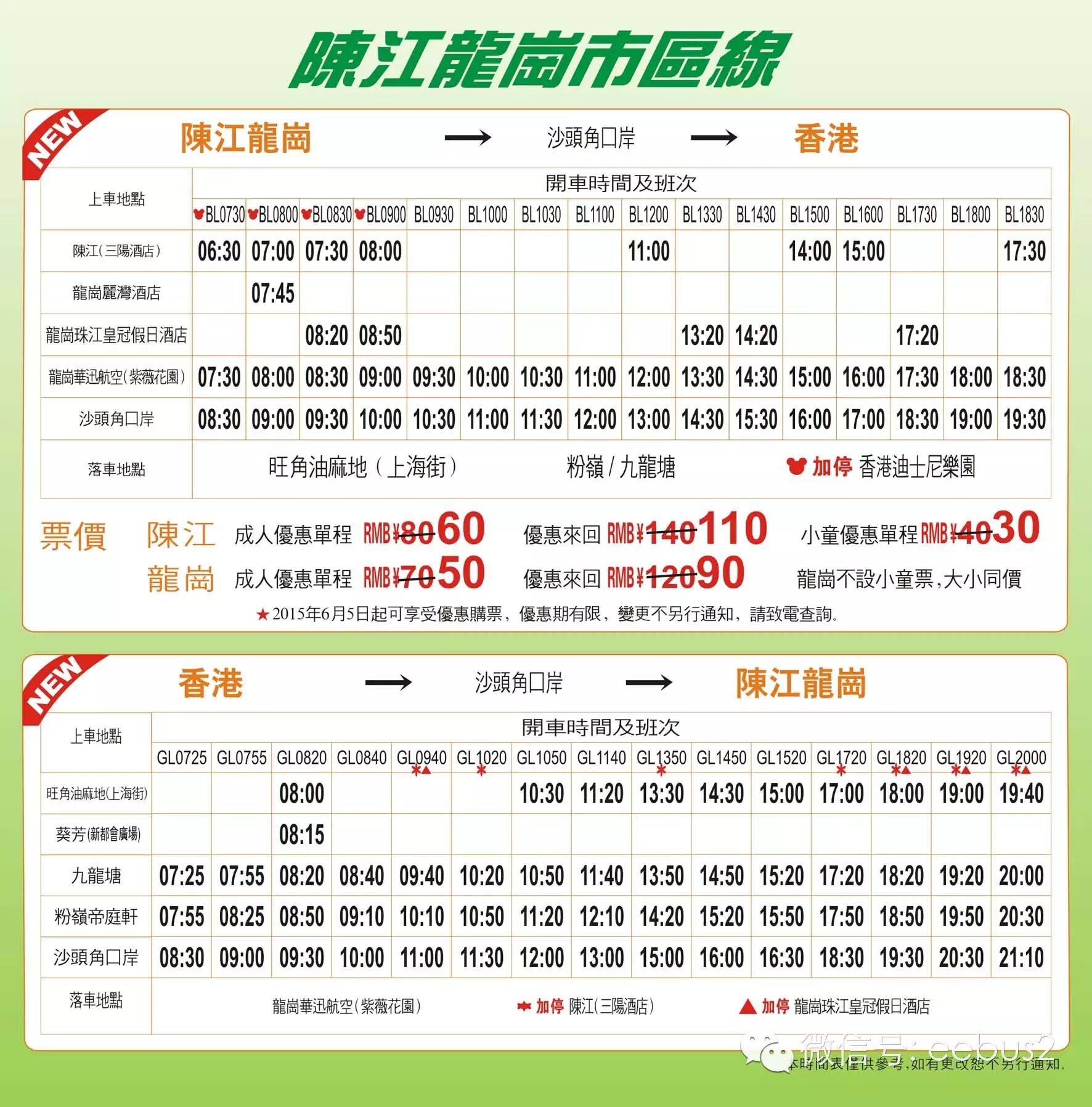 陈江龙岗线低至50元去到香港!往香港市区、香港国际机场、迪士尼乐园班次提升至30-60分钟一班,每天来回31个班次!更享特惠香港市区票价,单程只需50元(原价70元),来回仅需90元(原价110元),超值优惠!