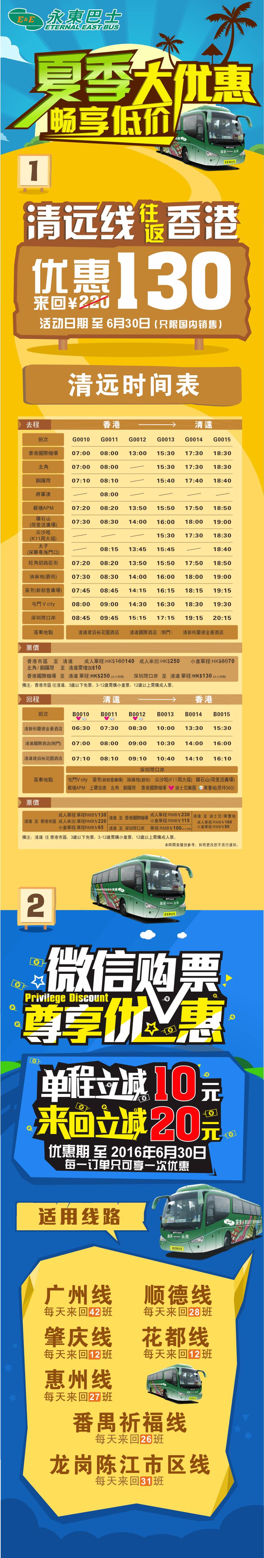 导读:夏季优惠享不停,【清远线】优惠来回车票¥130(原价¥220);【微信购票优惠】单程立减¥10元,来回立减¥20元!