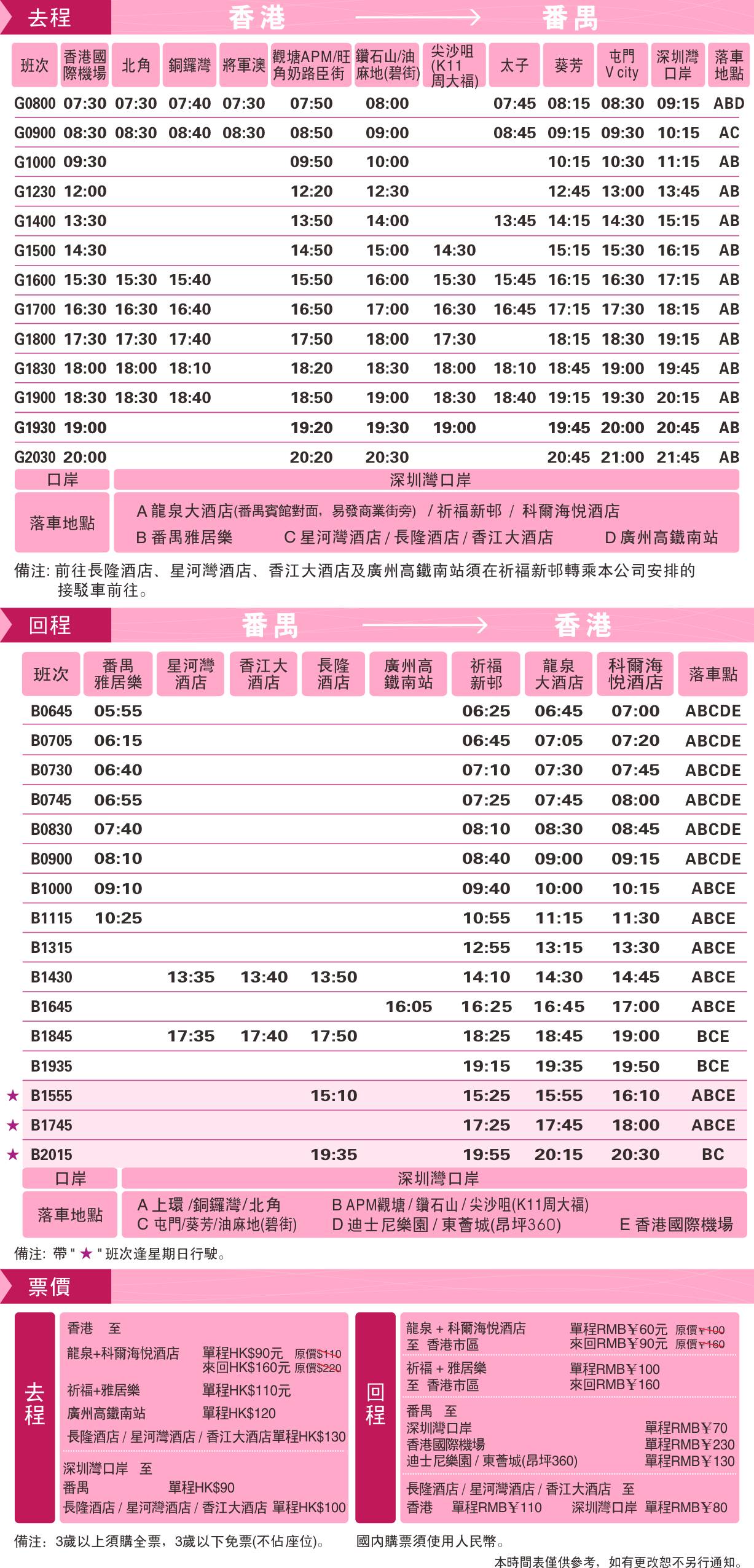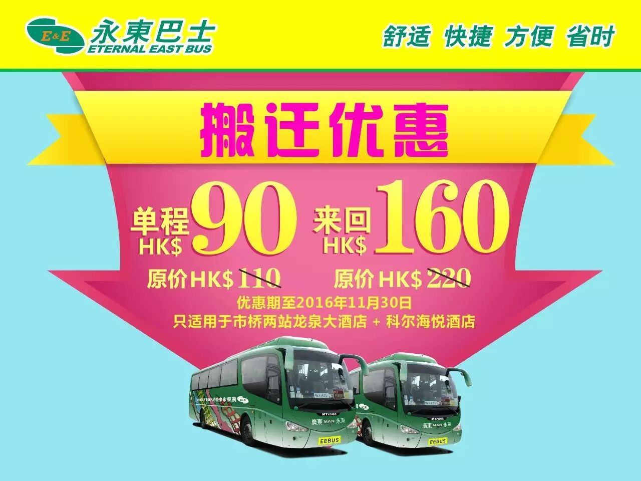 于市侨两站龙泉大酒店及科尔海悦酒店购票乘车往香港市区