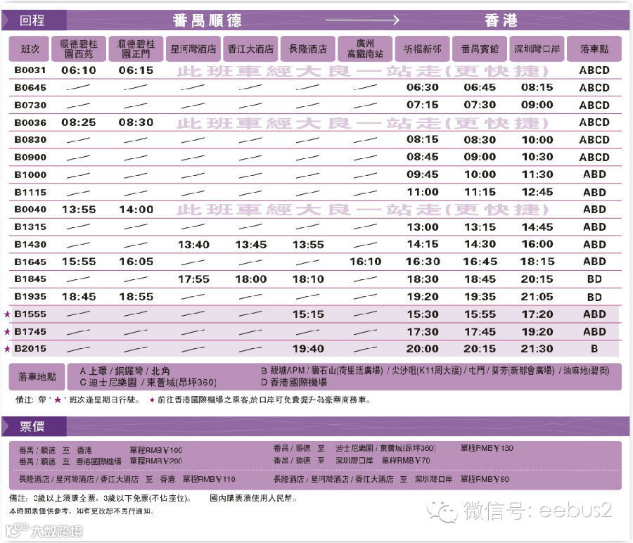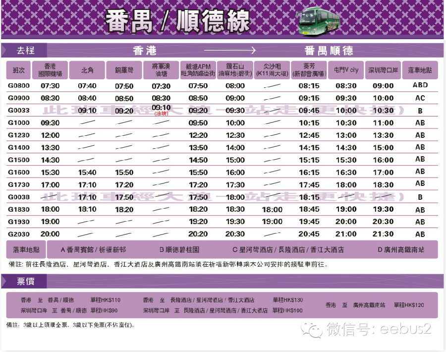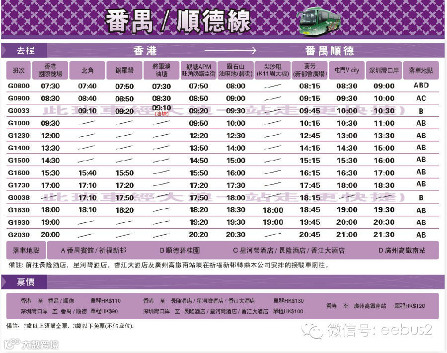 番禺、顺德←→香港,班次频密,站点齐全!每天来回22个班次。