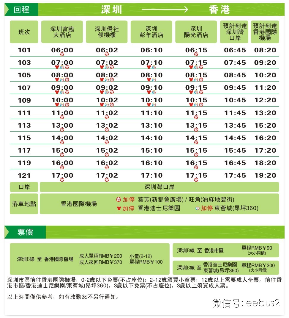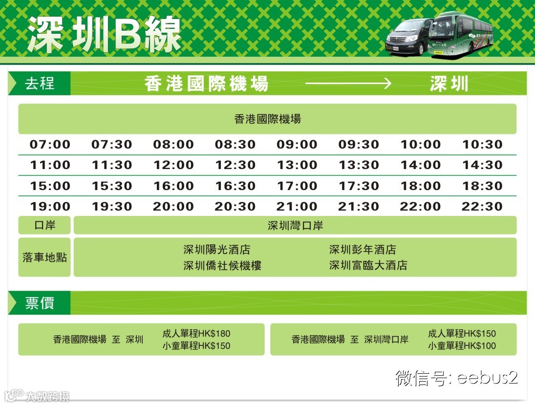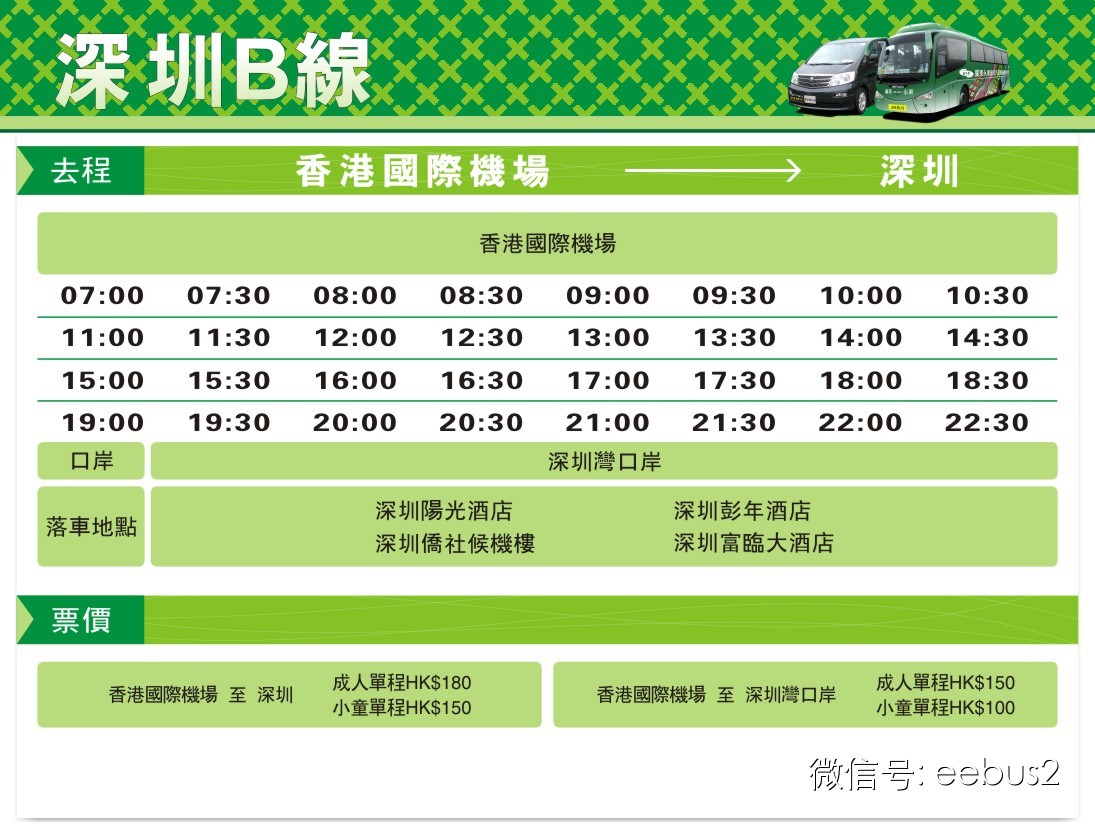 香港 ←→深圳酒店B线(富临大酒店、深圳侨社候机楼、深圳彭年酒店、深圳阳光酒店)每天来回43班次。班次频密,为您的出行带来更方便的服务。