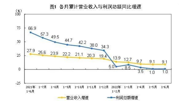 7月27日,国家统计局发布2022年1—6月份全国规模以上工业企业利润数据:1—6月份,全国规模以上工业企业实现利润总额42702.2亿元,同比增长1.0%(按可比口径计算)。
