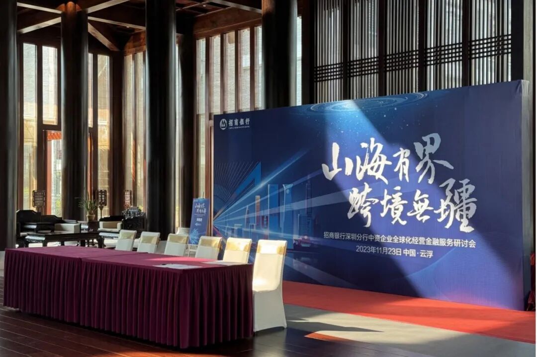 11月23日,“山海有界,跨境无疆”-2023年招商银行深圳分行中资企业全球化经营金融服务研讨会在云浮举行。