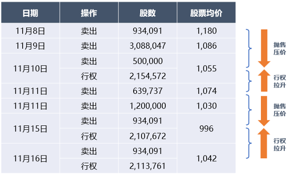 当我们仔细观察马斯克的抛售和行权时间安排时,就可以发现背后的精妙逻辑:高点抛售股票,压低股价后低点行权;行权又会抬升股价,将股价拉到高点后抛售。