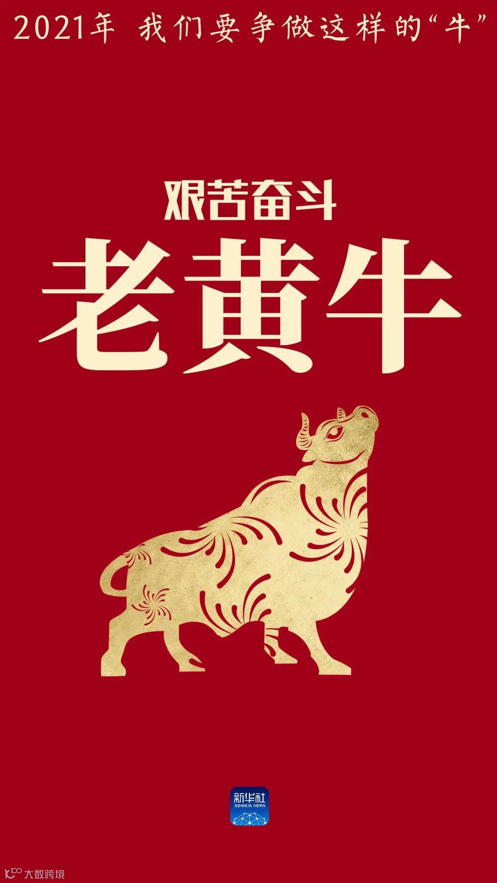我们已站上新的历史起点。2021年,是中国共产党成立100周年,是“十四五”开局之年,也是全面建设社会主义现代化国家新征程开启之年。任务光荣而艰巨,使命伟大而自豪。此时,我们更加呼唤这样的“中国牛”精神——