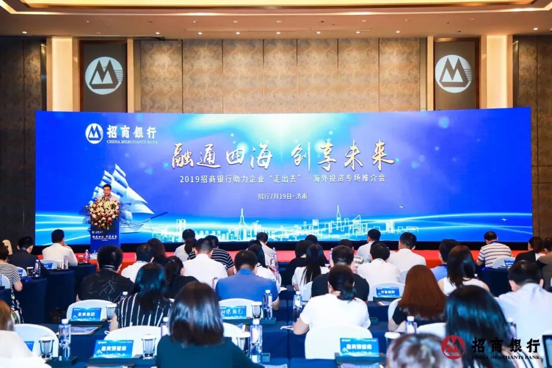 在当前全球经济下行、中美贸易摩擦、汇率波动加大的背景下,为了更好地为企业提供国际贸易融资、汇率、利率风险管理以及内外贸一体化等跨境综合金融服务,招商银行于2019年7月19日在济南举办了“融通四海,创享未来”2019助力企业“走出去”—海外投资大型专场推介会。