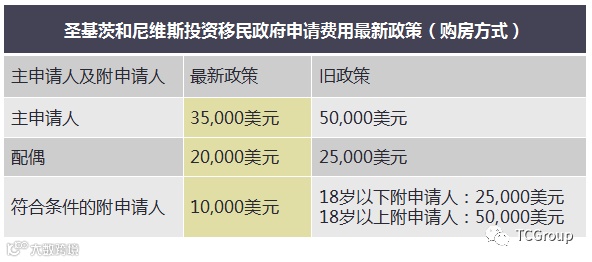 圣基茨和尼维斯投资移民政府申请费(仅限房地产投资方式)新旧政策对比:
