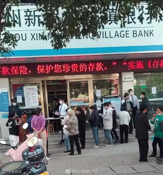 涉事村镇银行关闭线上渠道后,一些储户到营业点排队取款