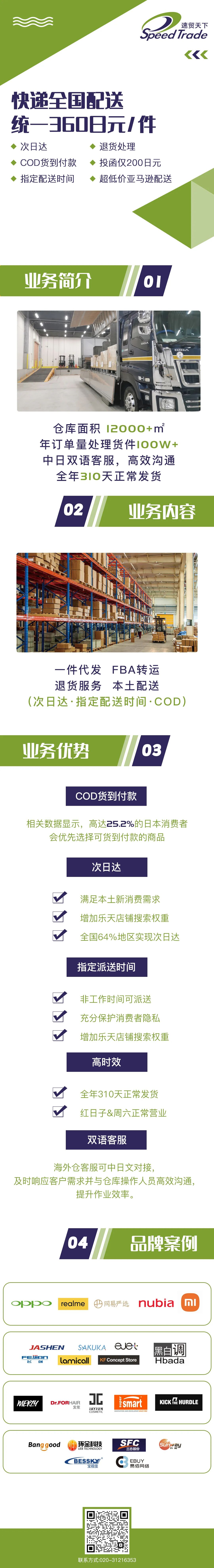 公司主营业务有:物流仓储、日本各大电商平台的招商代理及运营孵化指导、品牌代运营、品牌售后服务等;公司深挖跨境电商市场,依托长年的国际贸易经验,以品牌运营、拓展销售渠道、促进商贸往来为己任,向众多行业客户和从事互联网贸易的经营者提供国际物流、仓储管理、供应链金融,跨境电商代运营等为一体的综合服务商。