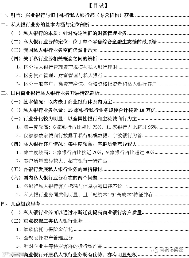 1、私人银行业务是针对特定客群的,即私人银行签约客户。这就意味着私人银行客群是有准入、退出标准的,即是有门槛的。