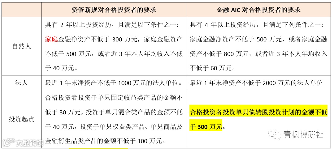 (3)合格投资者是资管新规和理财新规给予的投资者界定(参见【大资管行业手册2021年版】重温资管新规),具体来看合格投资者是指具备相应风险识别能力和风险承担能力,投资于单只资产管理产品不低于一定金额且符合下列条件的自然人和法人或者其他组织。