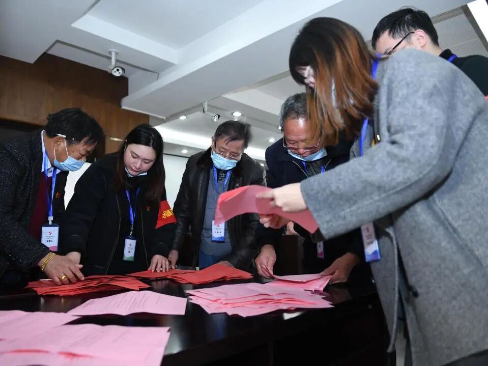 工作人员进行开箱验票,认真清点选票,随后集中进行了唱票计票环节。