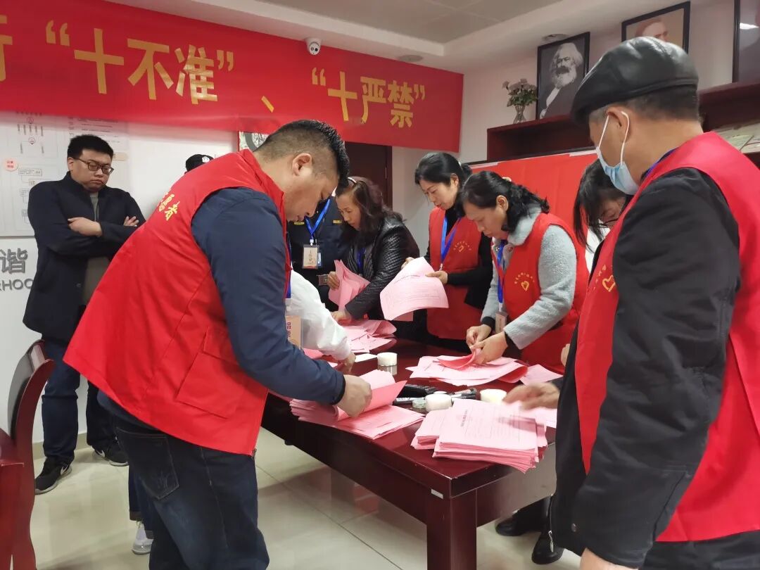 经过前期多次模拟演练及分析,选举工作顺利开展,全体工作人员积极认真筹备。为了方便居民前来投票,集体起早到达选举现场,为了确保换届井然有序,大家反复梳理工作流程。
