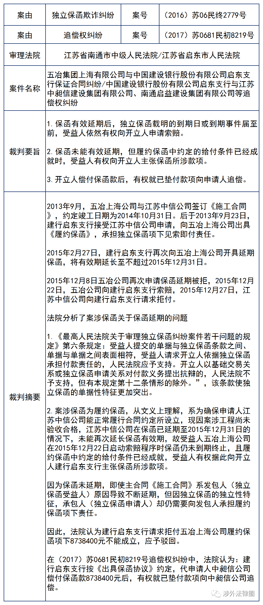 笔者曾在#企业申请涉外保函时应注意的问题[3]一文中,分析了独立保函的定义和特征,列举了部分法院审判实践参考案例,说明作为企业申请人在独立保函的性质、单据的种类、内容、金额条款、期限、法律适用和管辖权这几项常见风险点中应注意的风险把控。本篇文章接着来探讨关于独立保函在转让、延期以及独立保函欺诈问题中的潜在风险点。