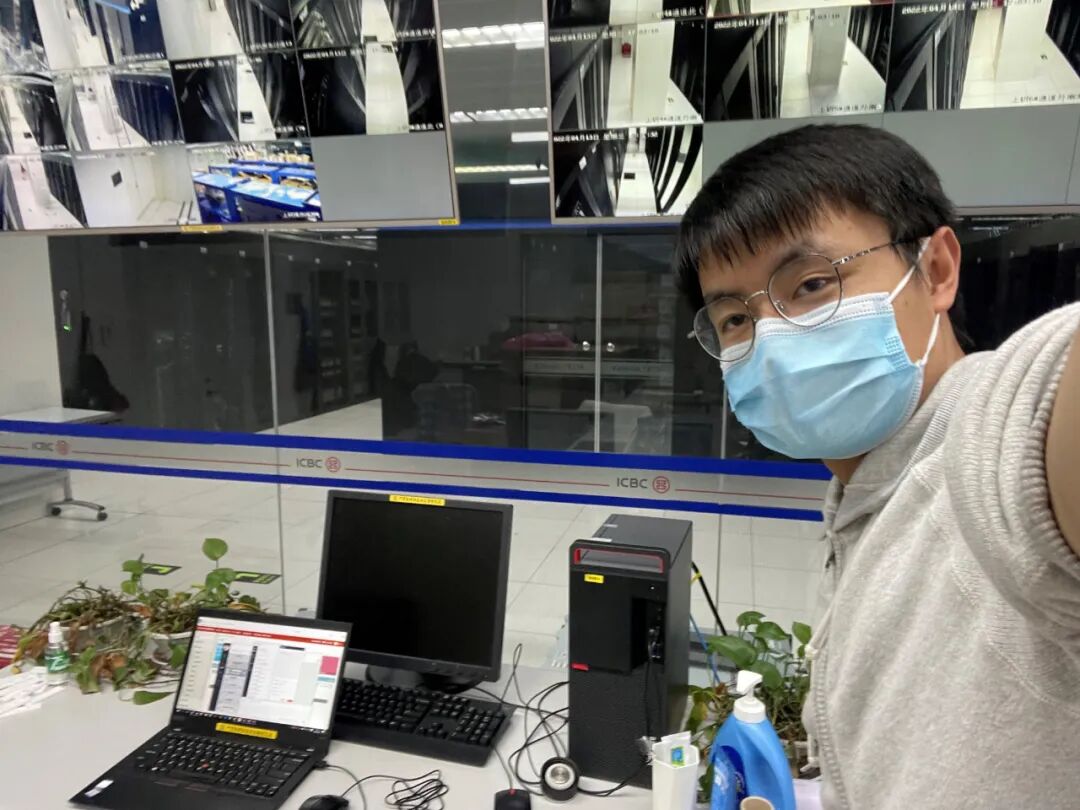在上海封控第一天3月28日凌晨1:30,他独自来到单位,吃饭、睡觉、工作,全都在位于金桥园区的机房,以保障机房600多台服务器和网络设备的安全运行,以及各种创新研发项目的顺利开展。