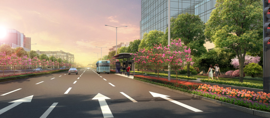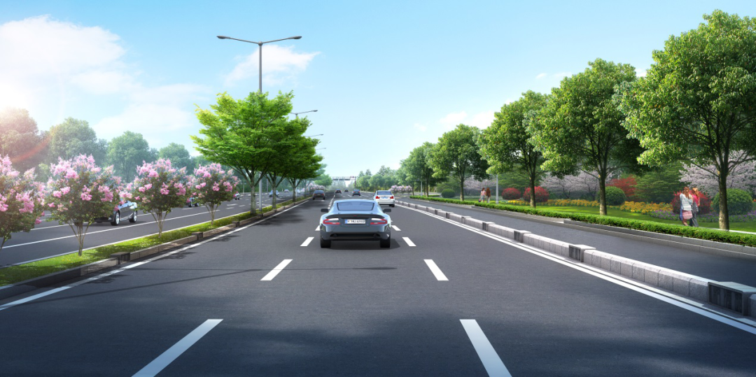 道路全长1126米,按现状道路宽40米进行提升改造,道路等级为城市主干道,设计速度为60km/h,双向6车道。