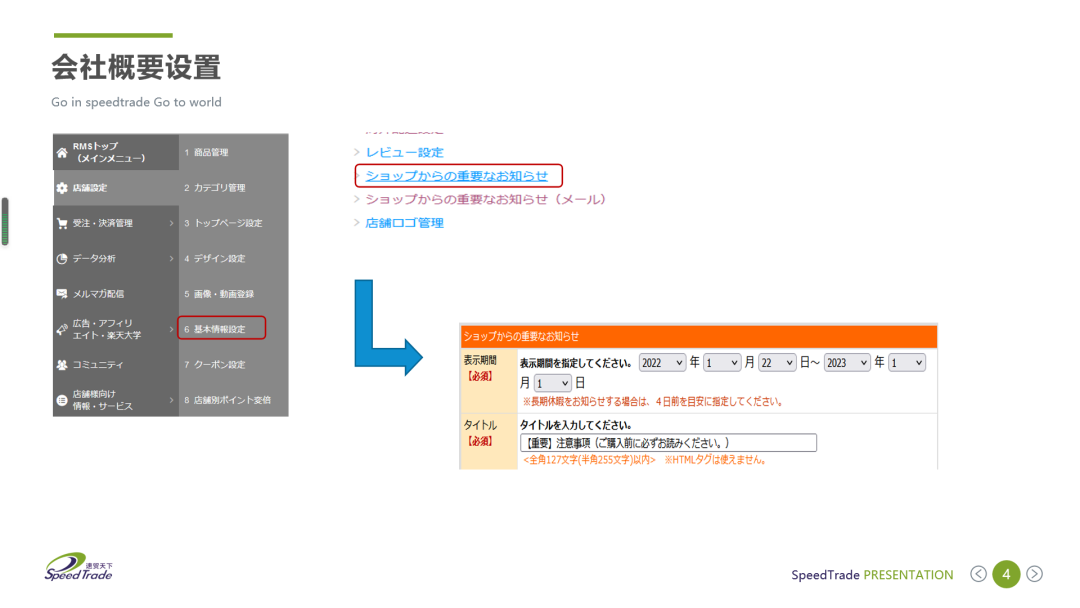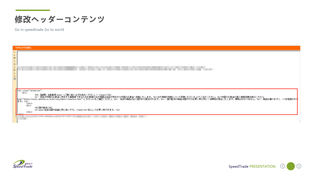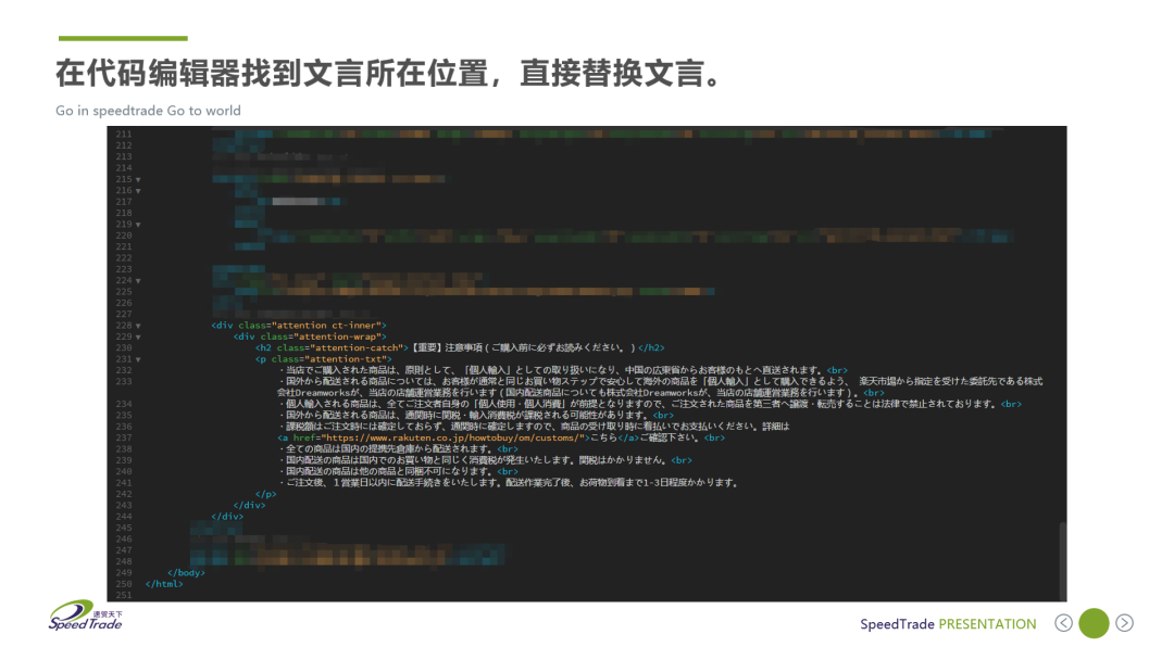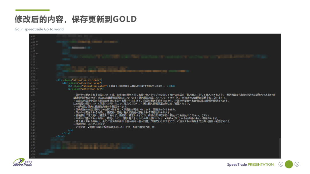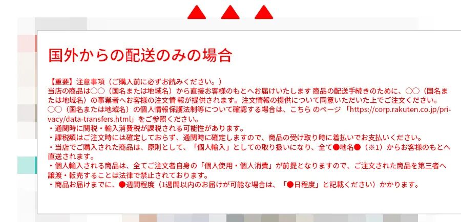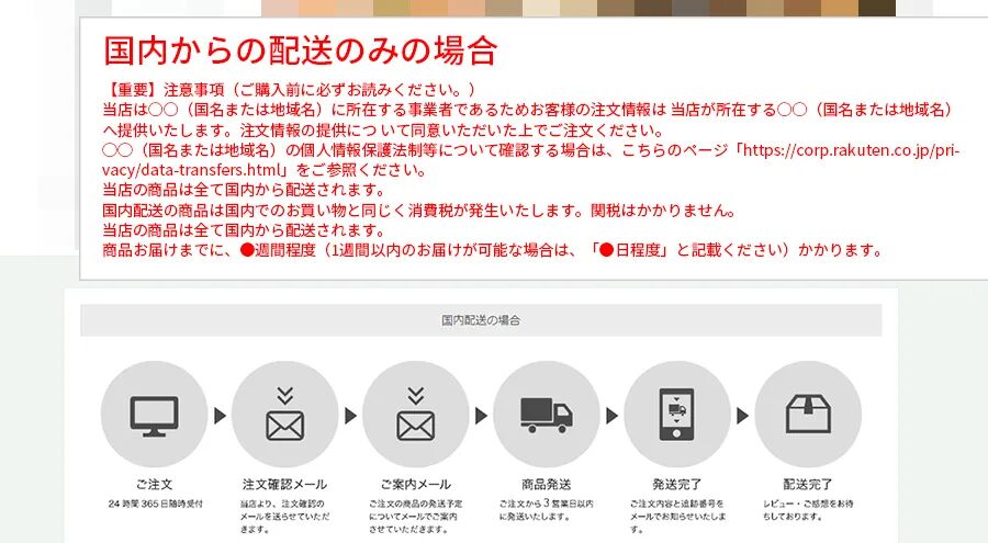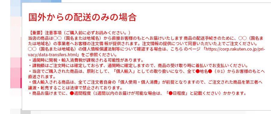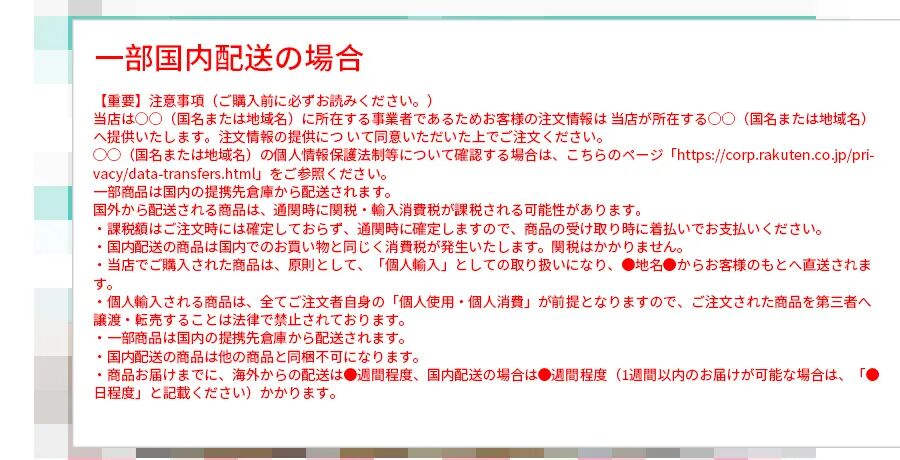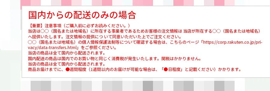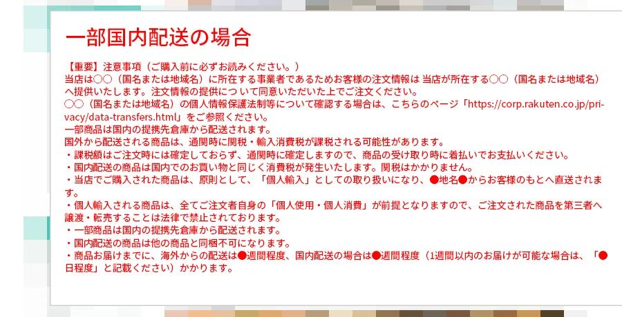 * 不同的发货类型的店铺(①日本本土发货;②海外直邮发货;③本土&海外混合发货)更新的文言的内容略有不同,请找到自己店铺适用的文言再进行更新