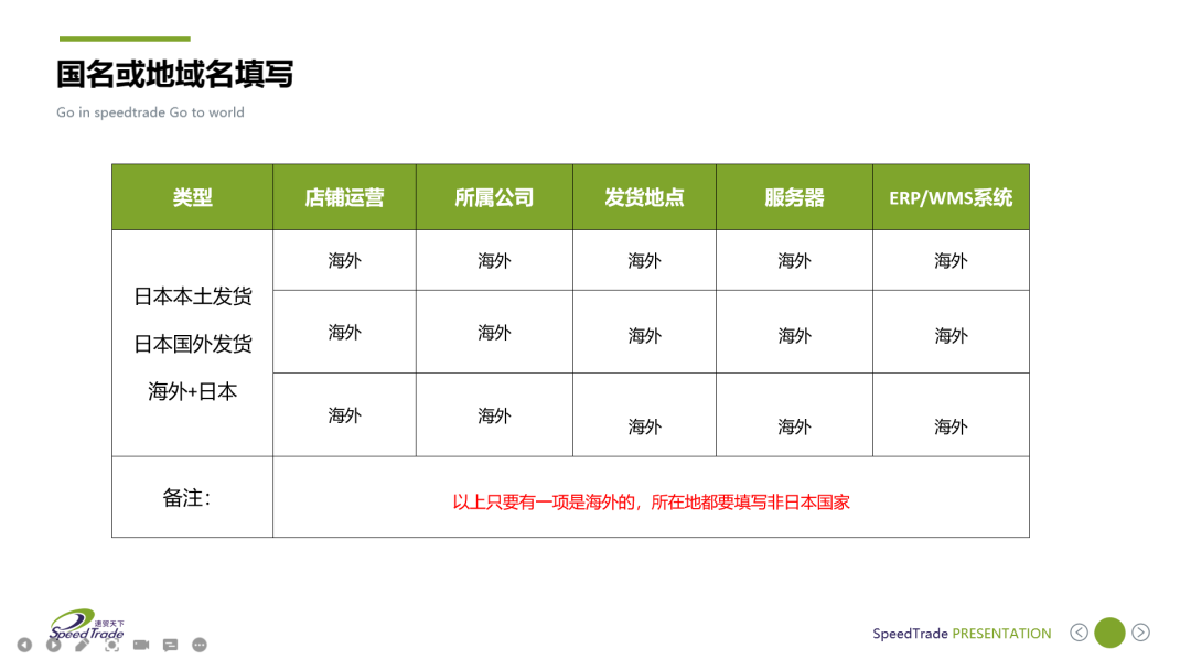 * 只要满足以下条件之一的店铺,【国名または地域名】位置必须填写(非日本)实际国家