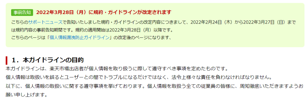 所以,为了海外卖家能够合规、顺利的进驻日本市场,开展运营和售卖工作,乐天平台在今年决定更新乐天规章(楽天ガイドライン)