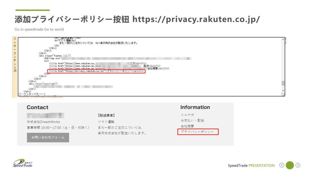 四、添加首页下部的隐私情报(プライバシーポリシー)