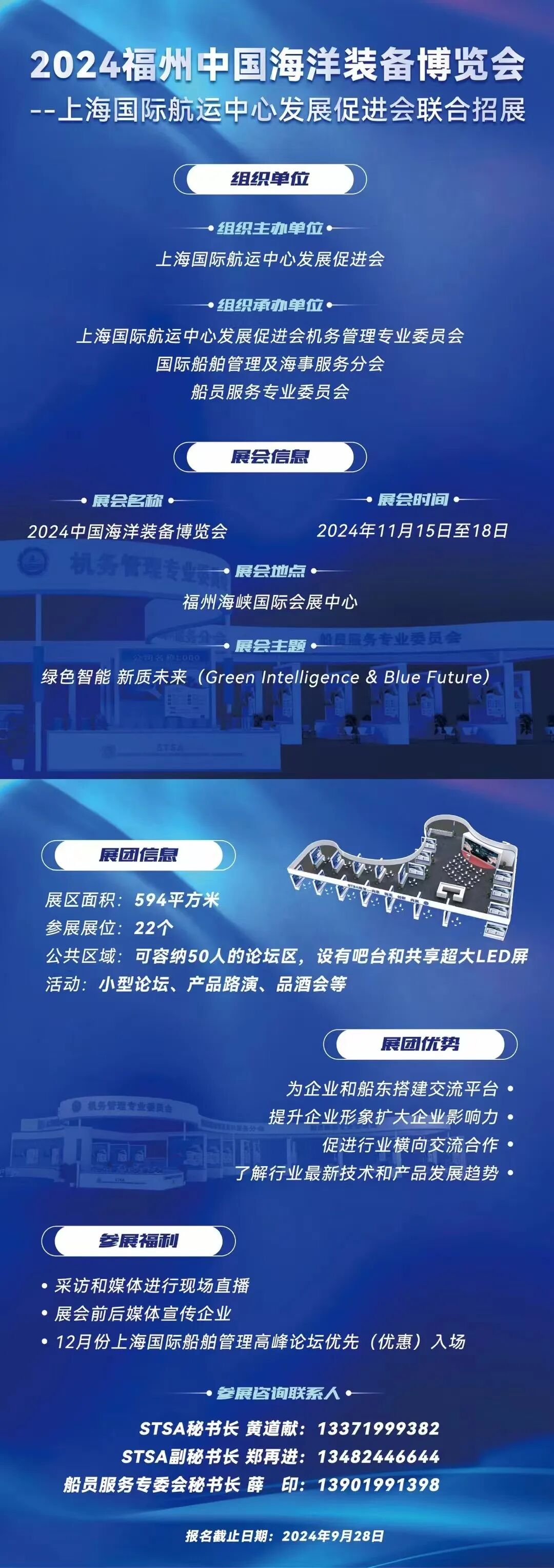 第二届中国海洋装备博览会(以下简称“博览会”)将于11月15-18日在福州举办,同期召开“2024世界航海装备大会”。博览会展览面积达10万㎡,将面向全球邀请世界500强企业、重点央企、行业独角兽、小巨人等行业重点企业参展,届时国际知名大牌企业将云集海装展,携手链接全球优势资源,共同展示世界海洋技术装备产业最新风向,努力打造世界级的海洋装备交流展示窗口。