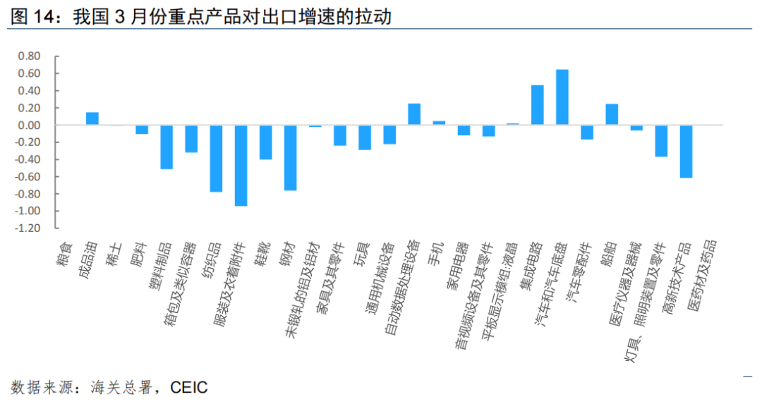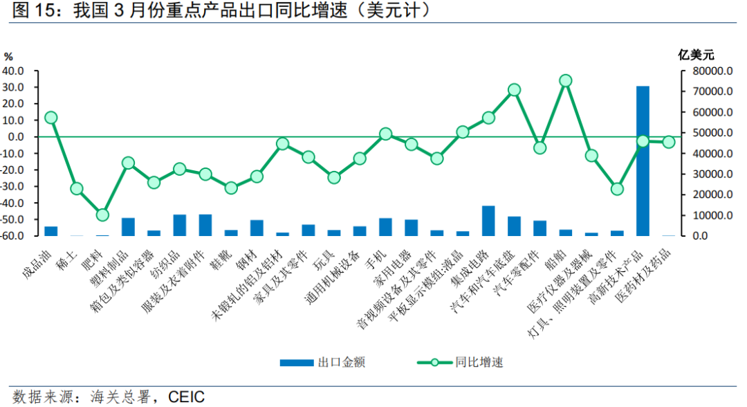 劳动密集型产品出口在高基数下明显回落。