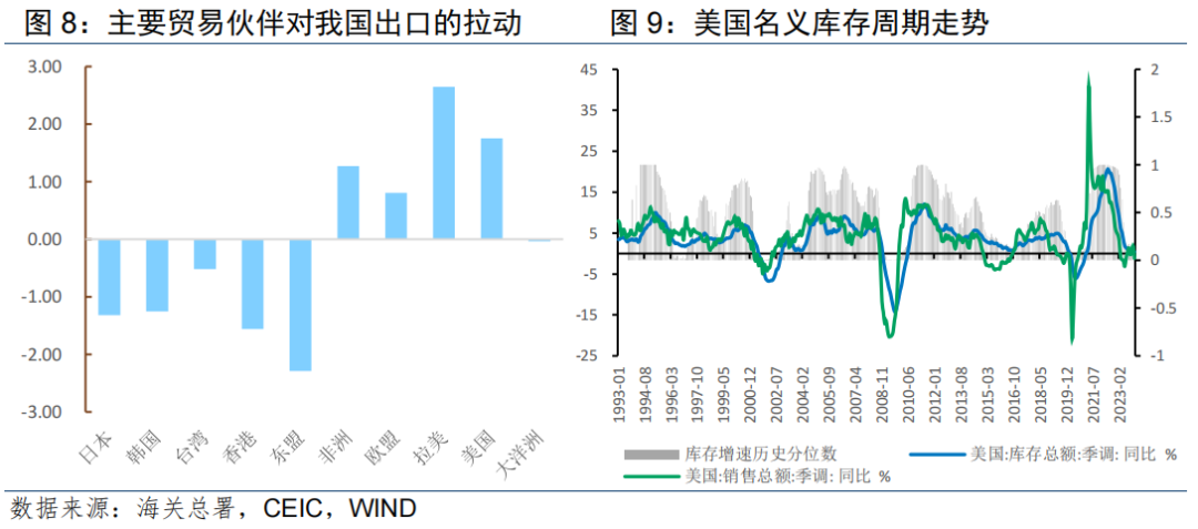 发布的分行业库存和销售数据显示,已有超过半数行业进入主动补库存周期;另一方面受美国地产周期复苏拉动,2023年年初以来,美国成屋销售步入上行区间,2024年年初以来,新建住房销售亦开始回暖。