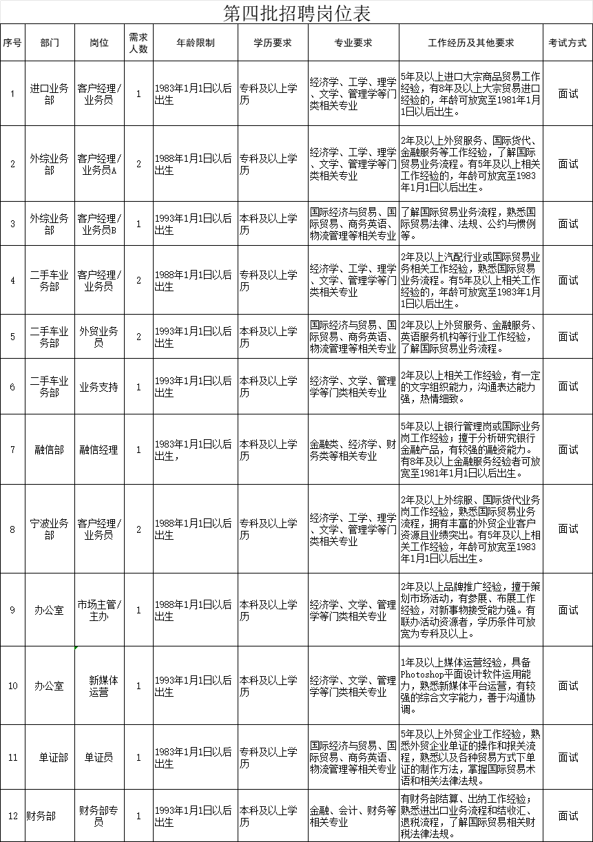 详情扫描文末二维码下载《附件2:海投云贸第四批招聘岗位表》。