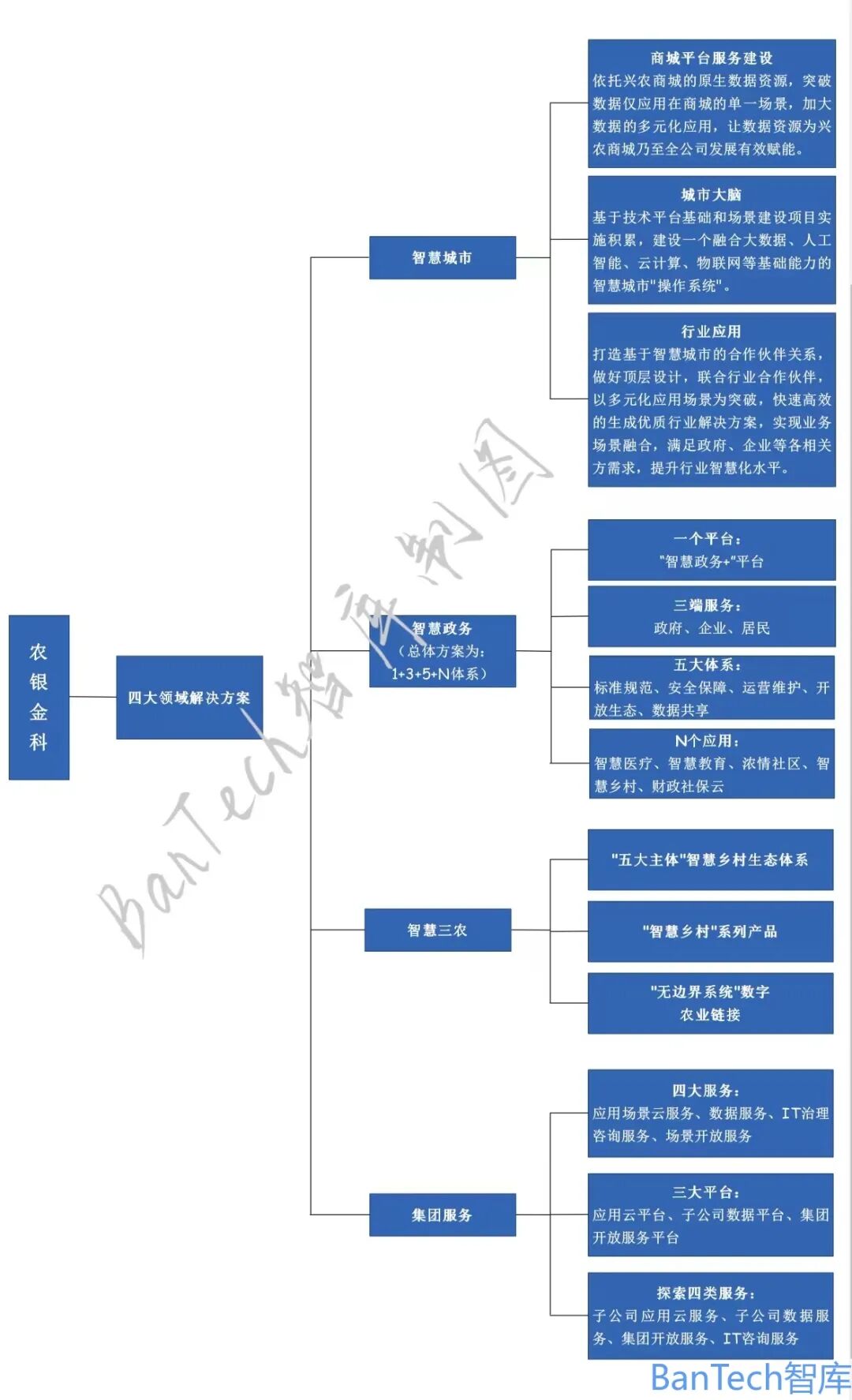 农银金科的业务范围涵盖电商业务、资讯服务、IT硬件研发及产品输出、集团服务及自主创新等几个方面。具体解决方案包括智慧城市、智慧政务、智慧三农、集团服务四大领域。